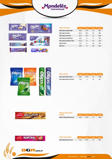 Candies Capacity Pcs/Crt Crt/Pal Pcs/Pal