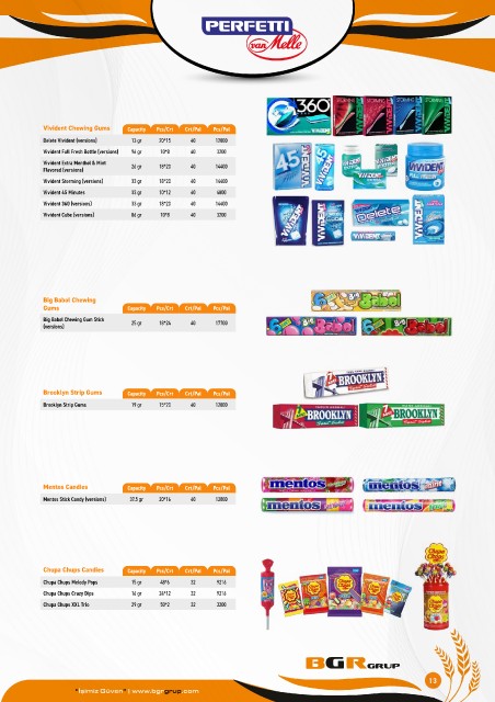 Vivident Chewing Gums Capacity Pcs/Crt Crt/Pal Pcs/Pal