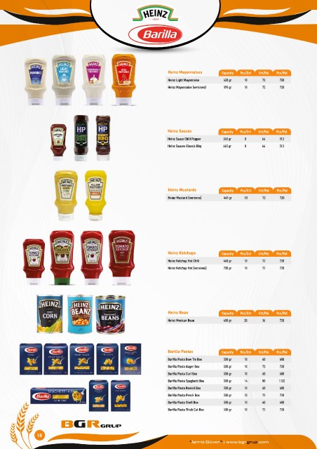 Heinz Mustards Capacity Pcs/Crt Crt/Pal Pcs/Pal