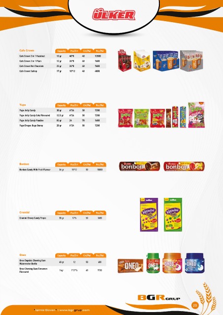 Bonbon Capacity Pcs/Crt Crt/Pal Pcs/Pal