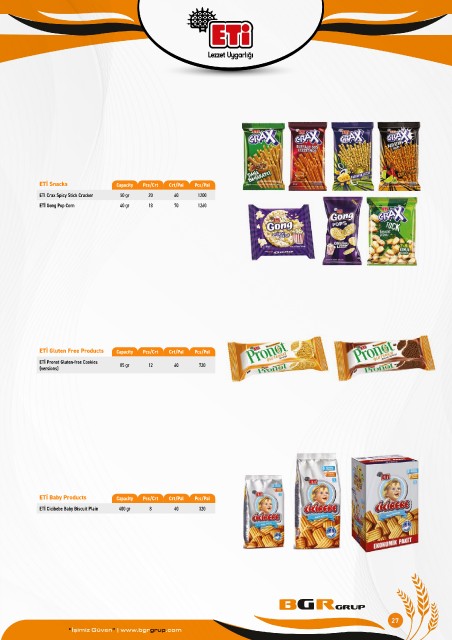 ETİ Snacks Capacity Pcs/Crt Crt/Pal Pcs/Pal