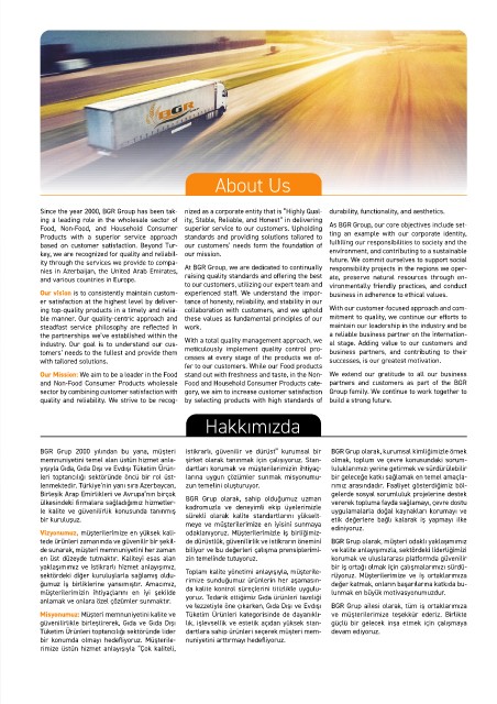 ve lezzetiyle öne çıkarken, Gıda Dışı ve Evdışı BGR Grup ailesi olarak, tüm iş ortaklarımıza