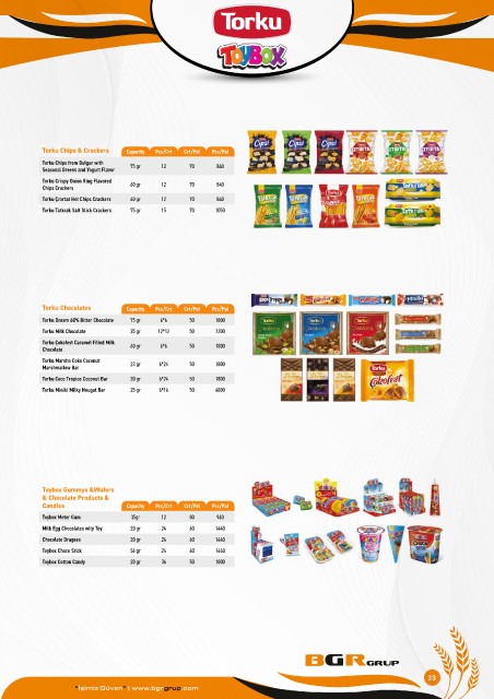 Torku Chocolates Capacity Pcs/Crt Crt/Pal Pcs/Pal