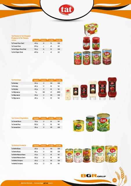 Tat Canned Vegetables Capacity Pcs/Crt Crt/Pal Pcs/Pal