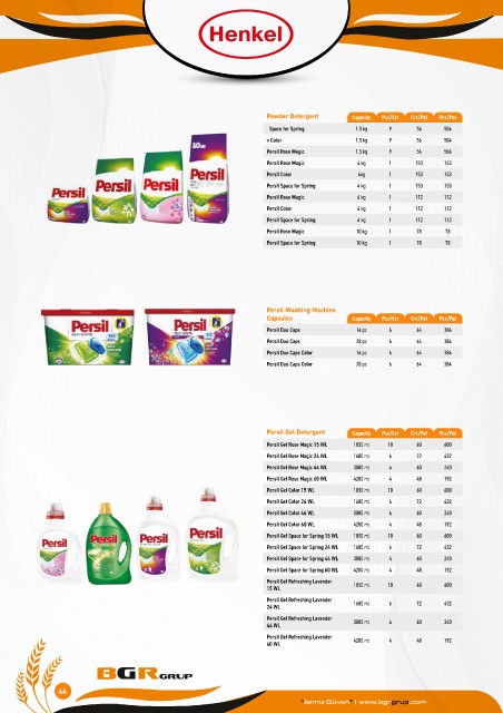 Persil Gel Detergent Capacity Pcs/Crt Crt/Pal Pcs/Pal