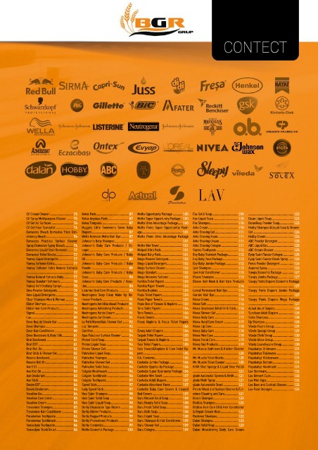 Rexona Roll On����������������������������������� 82 Palmolive Shower Gel ����������������������� 95 Canbebe Jumbo Package �����������������106 Mr� Muscle Toilet Cleaner ����������������120 Paşabahçe Borcam ��������������������������131