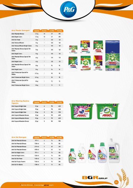 Ariel Powder Detergent Capacity Pcs/Crt Crt/Pal Pcs/Pal