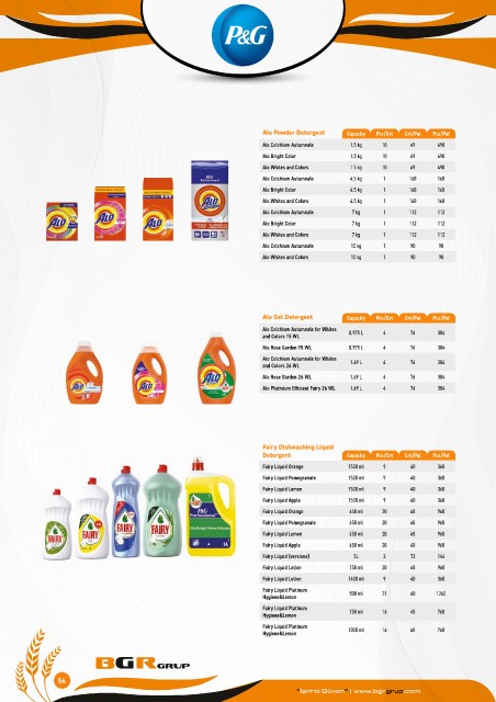 Detergent Capacity Pcs/Crt Crt/Pal Pcs/Pal