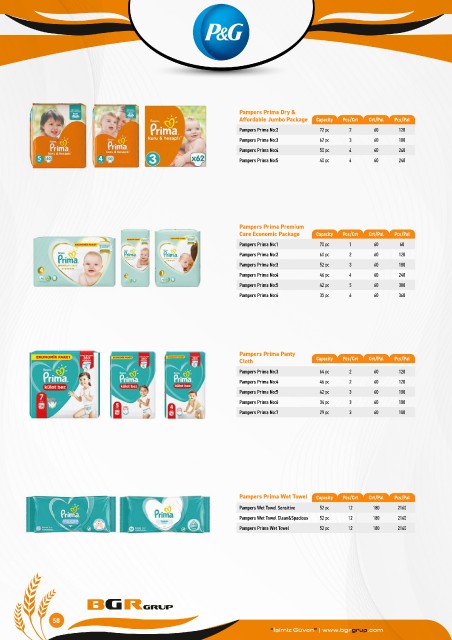Pampers Prima Wet Towel Capacity Pcs/Crt Crt/Pal Pcs/Pal