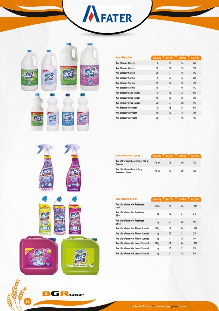 Ace Bleacher Spray Capacity Pcs/Crt Crt/Pal Pcs/Pal