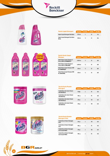 Vanish Liquid Detergent Capacity Pcs/Crt Crt/Pal Pcs/Pal