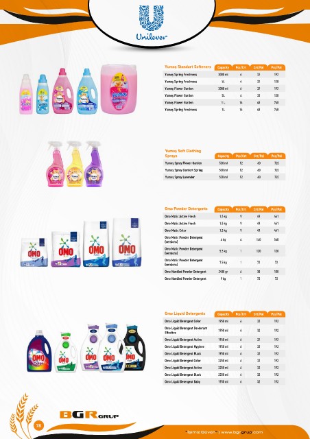Omo Liquid Detergents Capacity Pcs/Crt Crt/Pal Pcs/Pal
