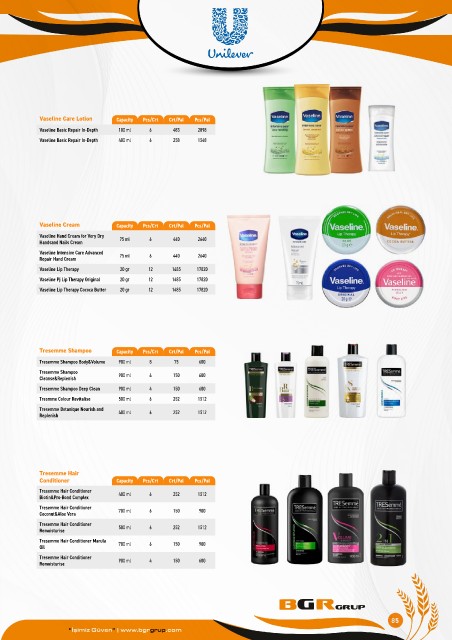 Vaseline Care Lotion Capacity Pcs/Crt Crt/Pal Pcs/Pal